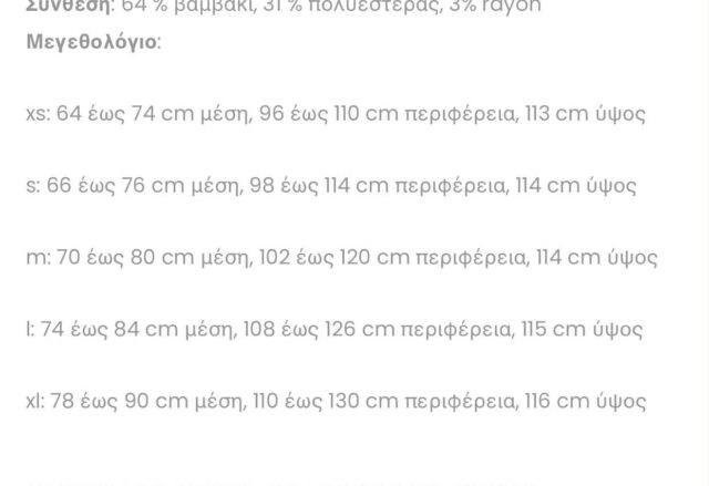 Μέγεθος | XS, S, M, L, XL |
